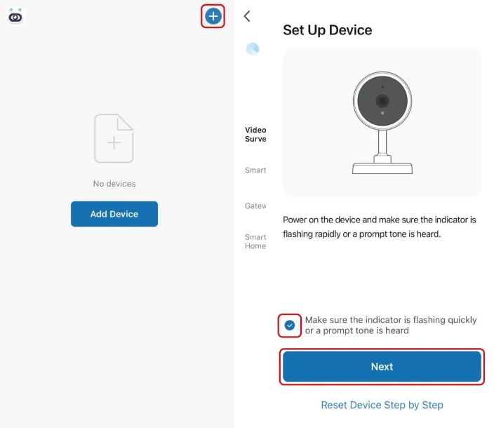 Tap the + sign on the home screen of the app and say “add device”. The indicator will flash quickly while the connection is established.